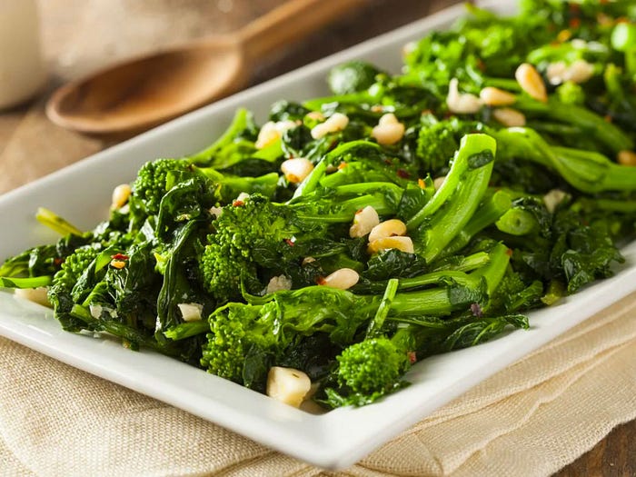 Le cime di rapa sono anche un’ottima fonte di vitamina K, vitamina A, vitamina C e calcio. Oncia per oncia, contengono circa 10 volte la quantità di vitamina A rispetto al cavolo e circa 10 volte la quantità di calcio rispetto al cavolfiore.